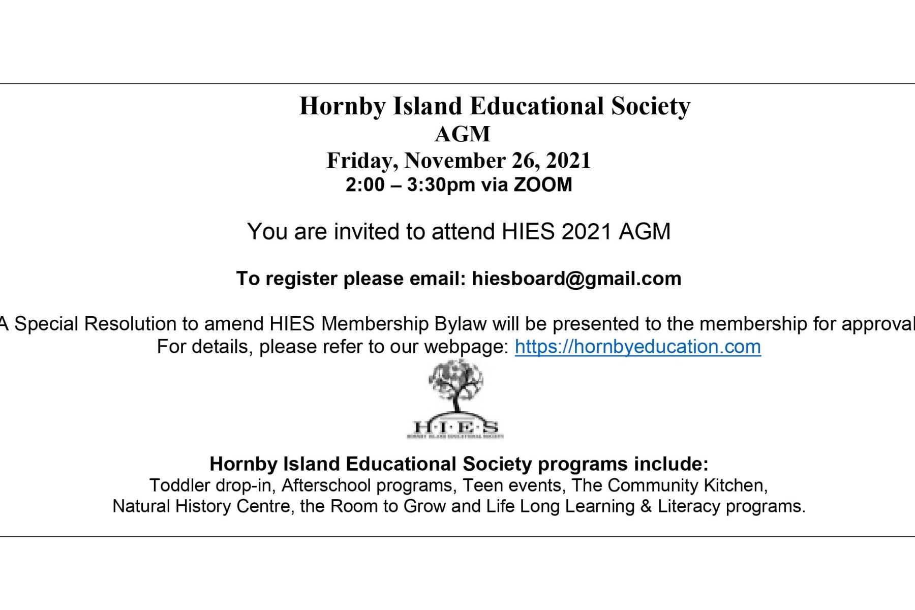 Follow the links below to learn about becoming a member. HIES envisions a healthy, vibrant, inclusive community on Hornby Island, that includes supported and coordinated lifelong learning. Our mission is to further education and community capacity building on Hornby Island by developing, providing and/or facilitating programs, services and activities through advocacy, coordination and collaboration.